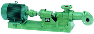 I-1B系列螺桿泵是一種單螺桿式輸送泵,它的主要工作部件是偏心螺旋體的螺標(稱轉(zhuǎn)子)和內(nèi)表面呈 雙線螺旋面的螺桿襯套(稱襯定子)。其工作原理是當電機帶動泵軸轉(zhuǎn)動時,螺桿一方面繞本身的軸線旋轉(zhuǎn),另一方面它又沿襯套表面滾動,于是形成泵的密封腔室。螺桿每轉(zhuǎn)一周,密封腔中的液體就向前推進一個螺距。隨著螺桿的連續(xù)傳動,液體以螺旋方式以一個密封腔向另一個密封腔,最后擠出泵體。